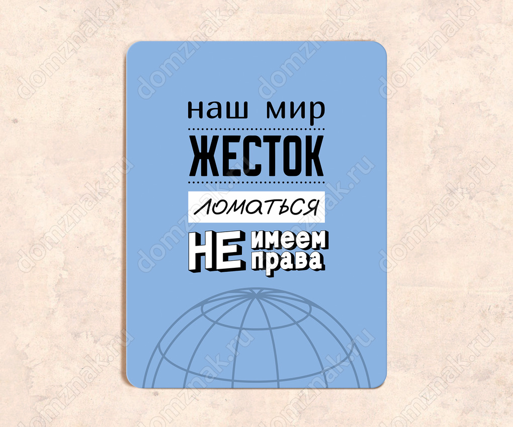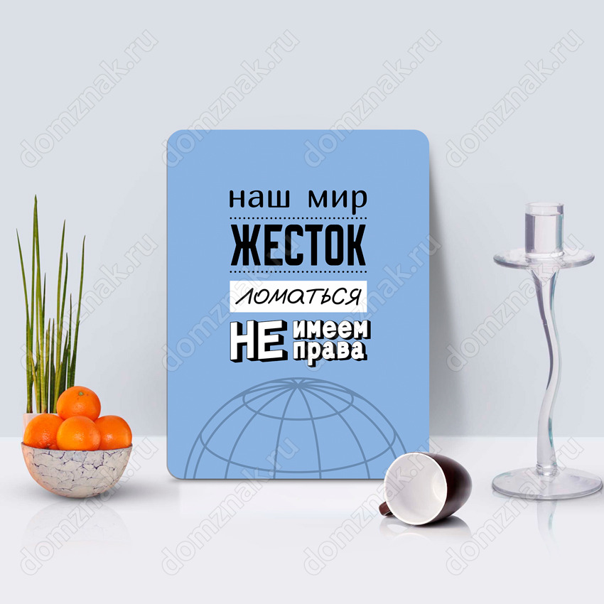 Табличка «Наш мир жесток ломаться не имеем права»